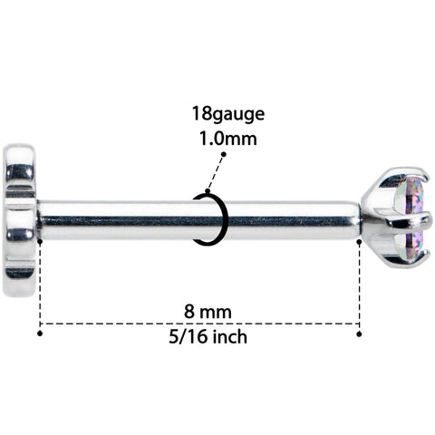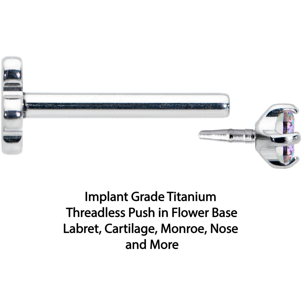 Hypoallergenic jewelry for sensitive skin18 Gauge 5/16 Vitrail CZ G23 Titanium Threadless Flower Labret Tragus