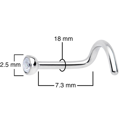 Don't let your nostril piercing get screwed up by inferior jewelry - grab one of these 18 gauge nostril rings instead! It features a 7mm length at the bend post and is made with solid Grade 23 implant grade titanium. This subtle but stylish nose ring features a 2.5mm clear press fit gem end for a look that's fashionable but not over the top. It is designed for a left side nostril piercing and has a curving design that makes for comfortable wear and easy insertion. Comfortable, colorful, and quality - it's everything you could want for your nostril piercing in one petite package!Specifications