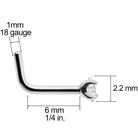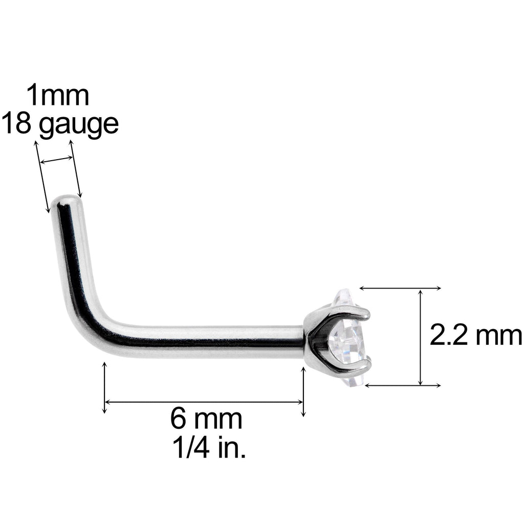 Hypoallergenic jewelry for sensitive skin18 Gauge Clear 2mm CZ Gem Grade 23 Titanium Rhombus L Shaped Nose Ring