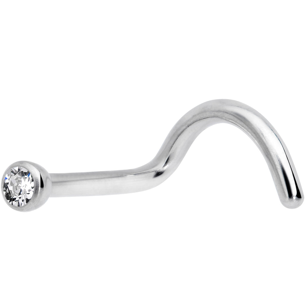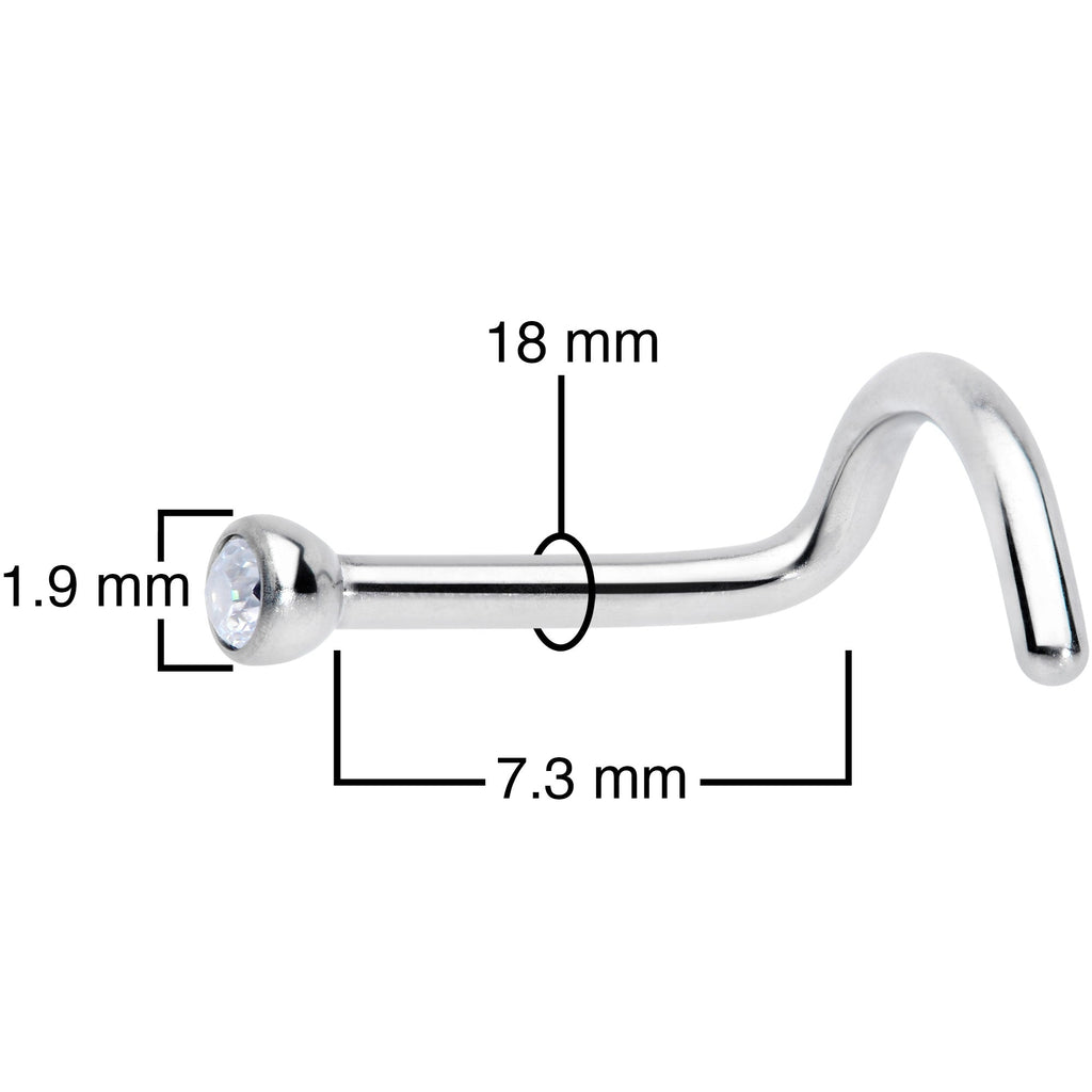 Don't let your nostril piercing get screwed up by inferior jewelry - grab one of these 18 gauge nostril rings instead! It features a 1/4" length at the bend post and is made with solid Grade 23 implant grade titanium. This subtle but stylish nose ring features a 2mm clear press fit gem end for a look that's fashionable but not over the top. It is designed for a left side nostril piercing and has a curving design that makes for comfortable wear and easy insertion. Comfortable, colorful, and quality - it's everything you could want for your nostril piercing in one petite package!