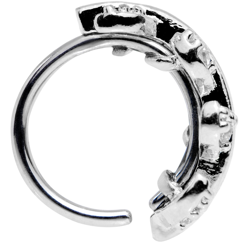 If you're into simple and easy to use universal jewelry this pretty 18 gauge nostril ring is right up your alley. Made with an adjustable 8mm durable 316L surgical grade stainless steel circular ring, this nose hoop is set with a leafy band set with clear cubic zirconia gems and features ends that can be twisted open and then twisted shut again to easily to fit into your nose piercing. This universal body jewelry can be used for multiple piercings including your nostril, cartilage, or any other place that is a perfect fit for you!