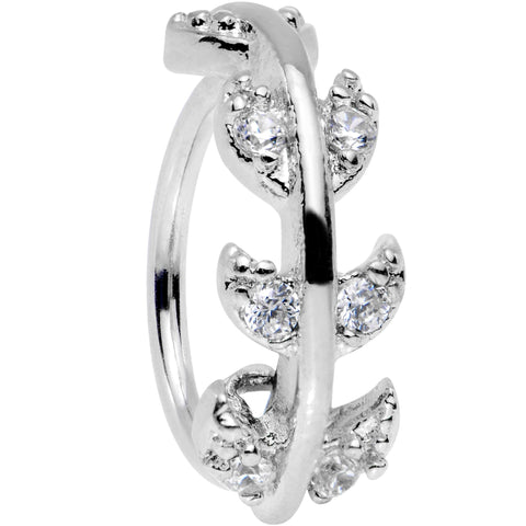 18 Gauge Clear CZ Gem Leafy Seamless Circular Ring