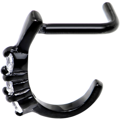 18G Clear Gem Black PVD Faux Hoop L Shaped Nose Ring