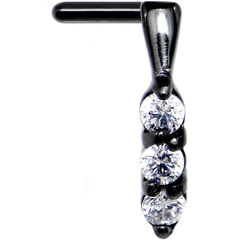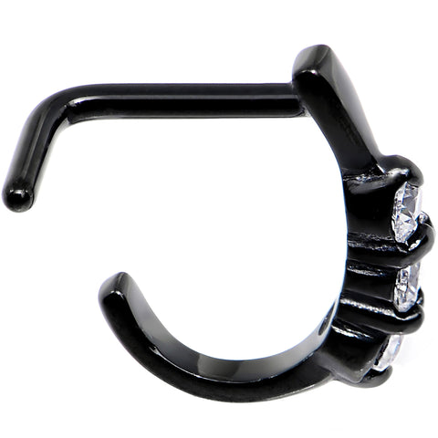 Embrace a whole new look for your nose piercing when you wear this unique nose ring that looks like a hoop! Made with a 5/16" length black PVD coated surgical grade stainless steel L-shaped post, this nostril piercing features three clear gems set on half of a hoop that sits outside of your nostril to give the illusion of a hoop in your regular (pierced!) nose piercing. Whether you are into hoops and don't like the way they fit or just want to try something new this style of nose jewelry may be right for you!