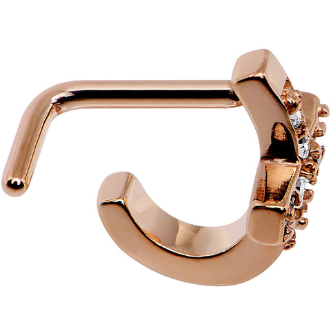18G Clear Rose Gold PVD Cross Faux Hoop L Shaped Nose Ring