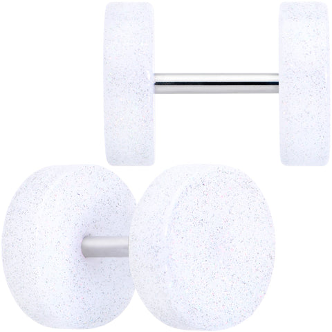 Hypoallergenic jewelry for sensitive skin.18 Gauge White Shimmer Acrylic Cheater Plug Set