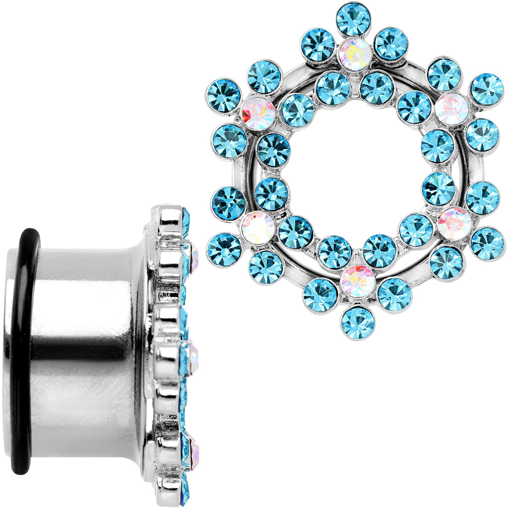 18mm Aqua and Aurora Gem Snowflake Steel Tunnel Plug