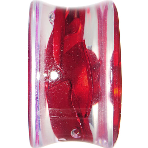Sold Individually, purchase 2 for a pair. 18mm clear acrylic plug featuring a floating scarlet red metallic rose. Let your beauty bloom with this elegant floral ear plug.
