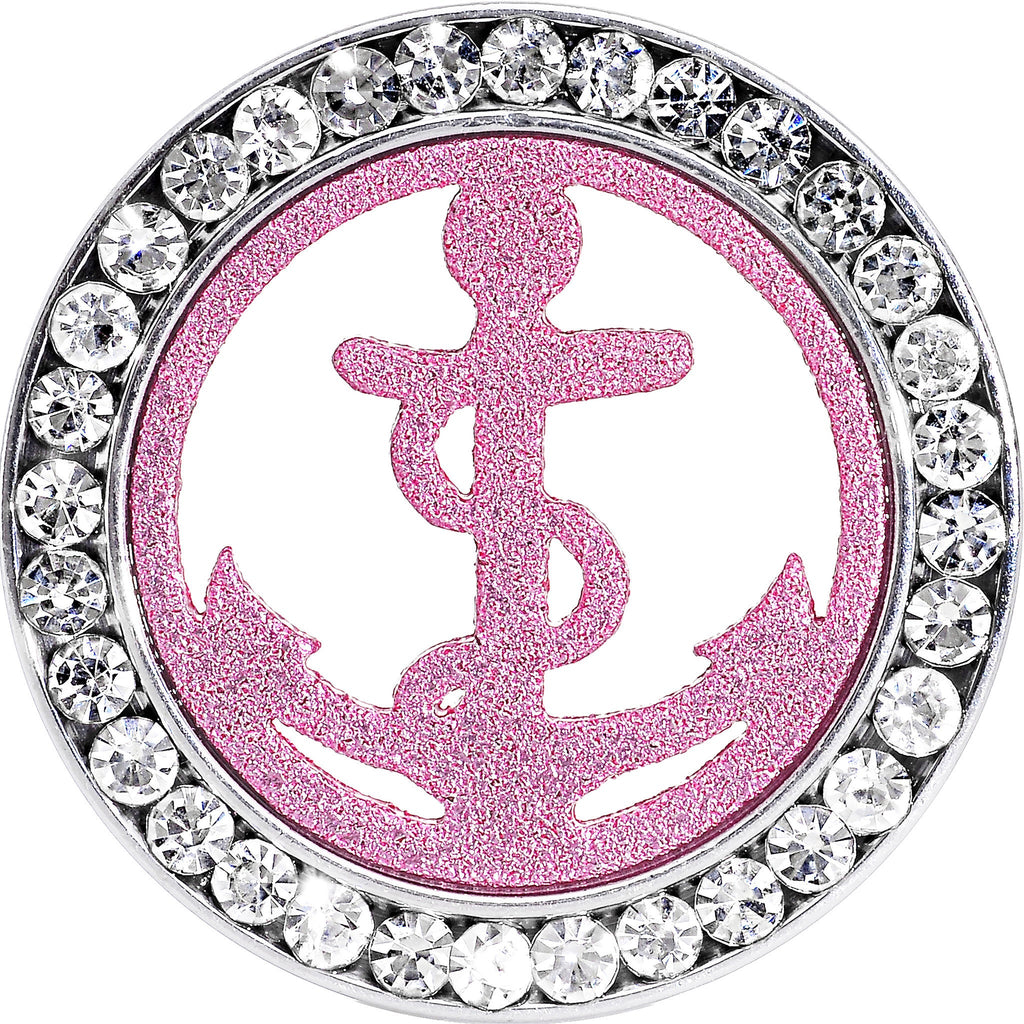 Hypoallergenic jewelry for sensitive skinAnchor your stretched lobes with this screw fit tunnel plug. This 316L surgical grade stainless steel ear plug features a glittering pink anchor design within the body jewelry's tunneled structure surrounded by a circle of clear sparkling accents. This 11/16" tunnel is sold individually, so please make sure to select a quantity of two (2) when ordering if you desire a pair.