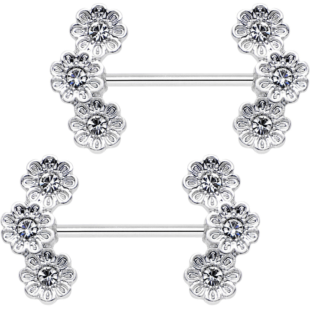 19mm Clear Gem Trio Poppy Flower Barbell Nipple Ring Set