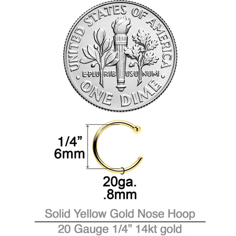 20 Gauge (.8mm), 1/4" (6mm), 14k Solid Yellow Gold Circular Nose Hoop, Handmade in the USA