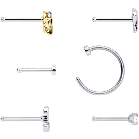 20G 1/4 5/16 Clear CZ Gem Shell Nautical Hoop Nose Bone Set of 6