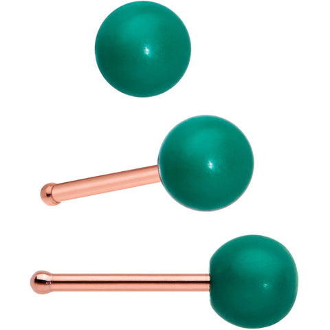 You'll have all the days of Christmas covered with this set of 20 gauge nostril rings! One is made with an 8mm rose gold tone PVD over 316L surgical grade stainless steel circular ring. It features a Christmas tree charm, embellished with red gem ornaments and a green star topper. The second is made with a 6mm length at the bend rose gold tone PVD over 316L surgical grade stainless steel L-shaped post. It features a snowman charm, wearing a jaunty red hat and a happy smile. The other two are made with 6mm rose gold tone PVD over 316L surgical grade stainless steel straight posts and each features a ball end in festive red or green. You'll be all dressed for the season and ready to go with this festive set of nose piercing jewelry! Sold as a set of four.Specifications