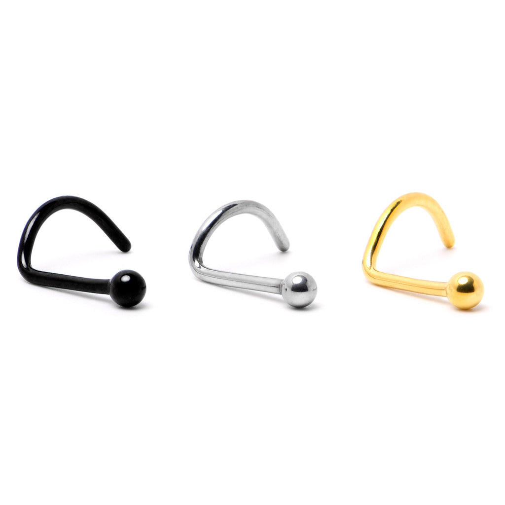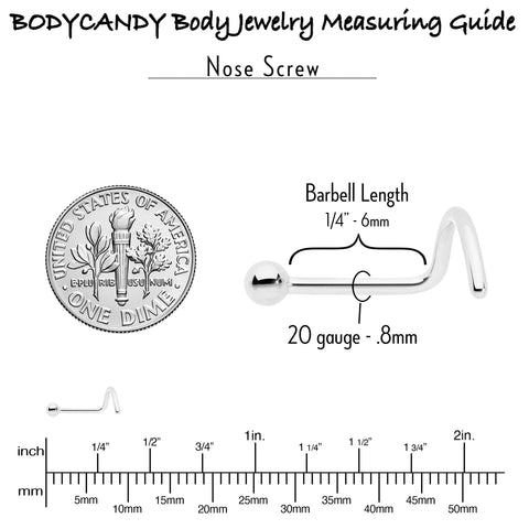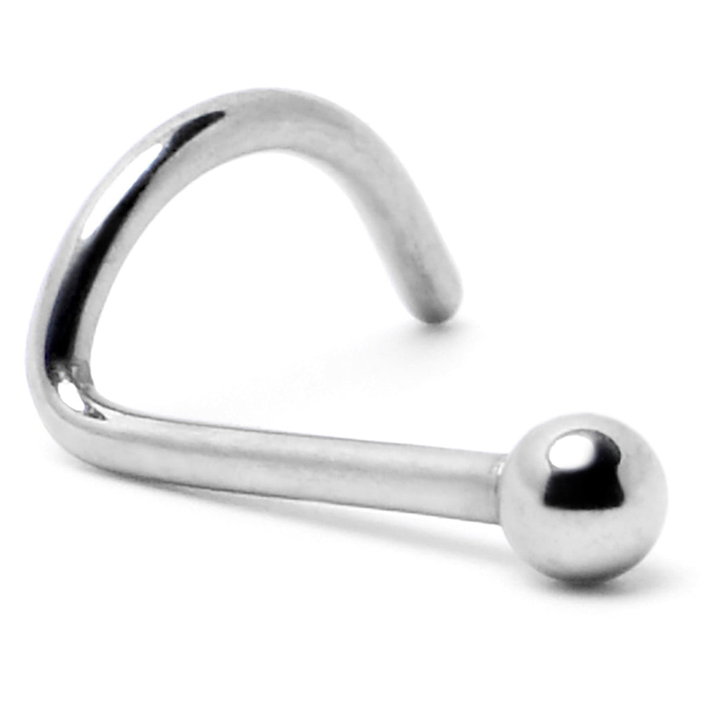 Why go big when you can go stylish and small with this 20 gauge nostril jewelry? It is made with a 6mm durable ASTM F-136 titanium post. It features a petite ball end for an understated appearance. It is designed for a left side nostril piercing and also has a curving design that makes for comfortable wear. You will be loving the simple beauty of this diminutive nose piercing ring.Specifications