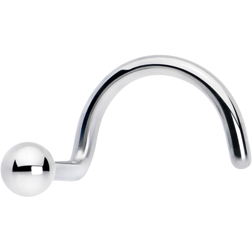 Why go big when you can go stylish and small with this 20 gauge nostril jewelry? It is made with a 6mm length at the bend ASTM F-136 titanium post. It features a 2mm ball end for an understated appearance. It is designed for a left side nostril piercing and also has a curving design that makes for comfortable wear. You will be loving the simple beauty of this diminutive nose piercing ring.Specifications