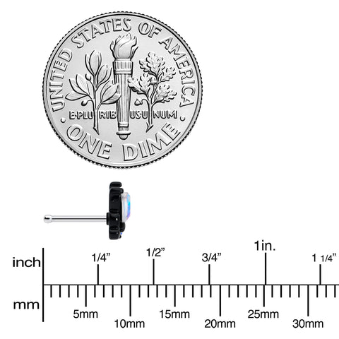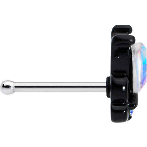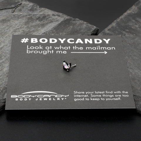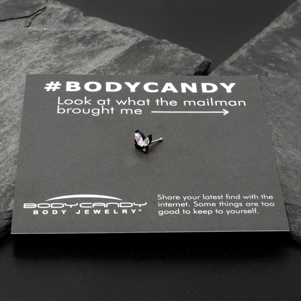 20 Gauge 1/4 Aurora CZ Gem Fleur de Lis Butterfly Black Nose Bone