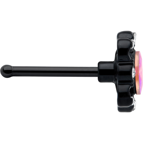 This 20 gauge nostril ring is full of fairy tale elegance. It is made with a 6mm black PVD over 316L surgical grade stainless steel straight post. It features a filigree styled charm, with clear gems set along the edge and an aurora gem center. You can not help but feel the magic when you are wearing this fairy tale-worthy nose piercing jewelry.Specifications