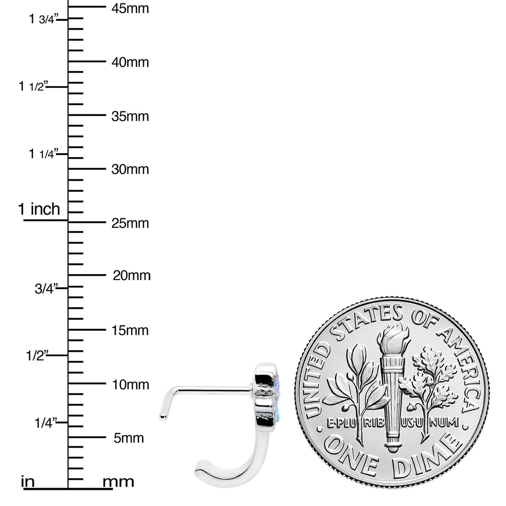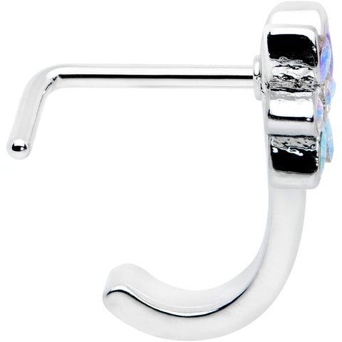 20 Gauge 1/4 Aurora Gem Fancy Flower Faux Hoop L Shape Nose Ring