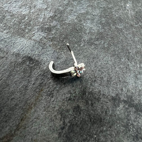 20G 1/4 Aurora Gem Fancy Flower Faux Hoop L Shape Nose Ring