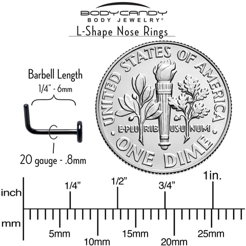 20 Gauge 1/4 Black ASTM F-136 Titanium 3mm Disc End L Shape Nose Ring