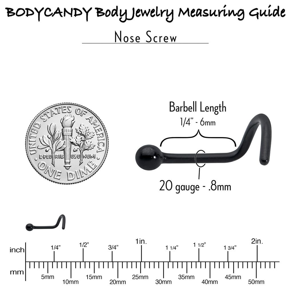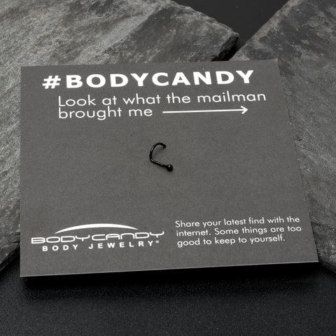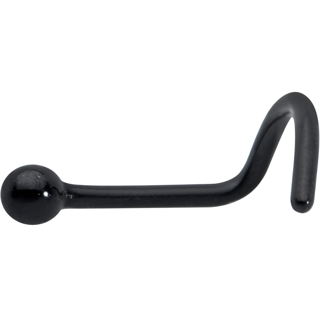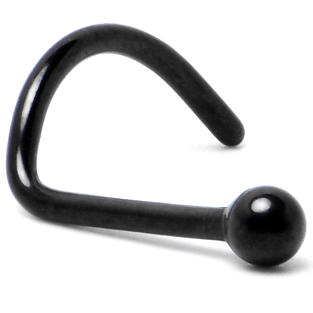 Why go big when you can go stylish and small with this 20 gauge nostril jewelry? It is made with a 6mm black PVD over ASTM F-136 titanium (solid medical grade titanium) post. It features a petite ball end for an understated appearance. It is designed for a left side nostril piercing and also has a curving design that makes for comfortable wear. You will be loving the simple beauty of this diminutive nose piercing ring.