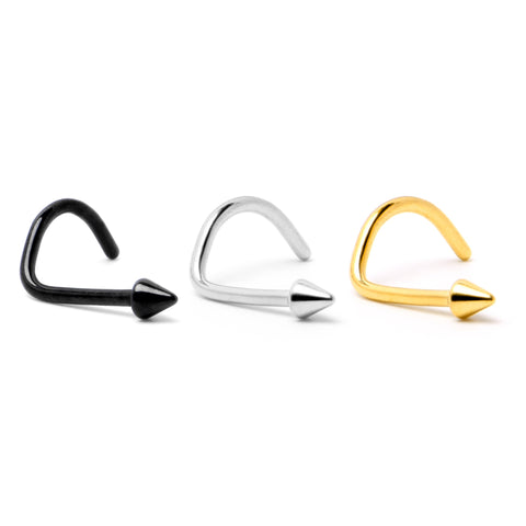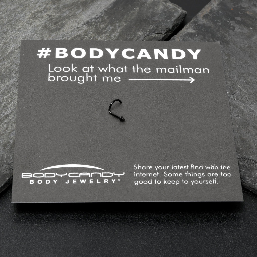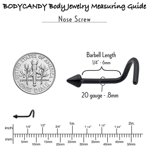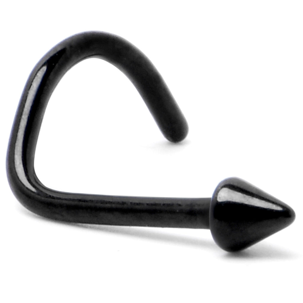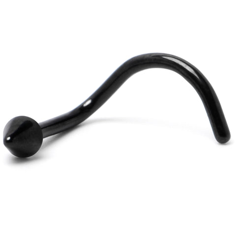 Why go big when you can go stylish and small with this 20 gauge nostril jewelry? It is made with a 6mm black PVD over ASTM F-136 titanium (solid medical grade titanium) post. It features a petite cone end for an understated yet stylish appearance. It is designed for a left side nostril piercing and also has a curving design that makes for comfortable wear. You will be loving the simple beauty of this diminutive nose piercing ring.