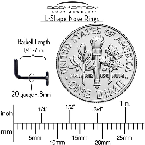 20 Gauge (.8mm), 1/4" (6mm) Length at the Bend, Black PVD over ASTM F-136 Titanium L Shaped Post