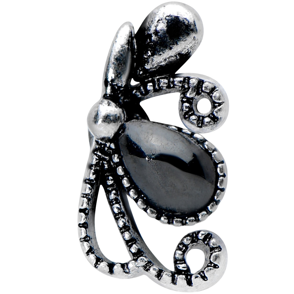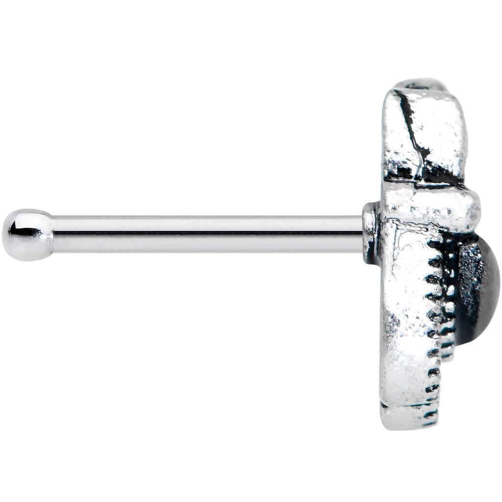 Get a little abstract with this 20 gauge nostril ring! It's made with a 6mm durable 316L surgical grade stainless steel straight post. It features a stylized bow charm, with smooth and textured loops for visual contrast. At the center, it's set with smooth black gems for an added touch of gothic style. Wrap your look up with a bow with this elegantly abstract nose piercing jewelry!Specifications
