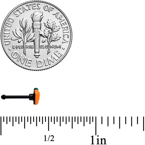 Not all Halloween jewelry needs to be scary, like the pumpkin on this 20 gauge nostril ring! It's made with a 6mm black PVD over 316L surgical grade stainless steel straight post. It features an orange pumpkin charm, with a green stem. The pumpkin's features are done in black and it's wearing an endearingly friendly smile. This Halloween, replace scary with smiley when you're rocking this pumpkin nostril jewelry!Specifications