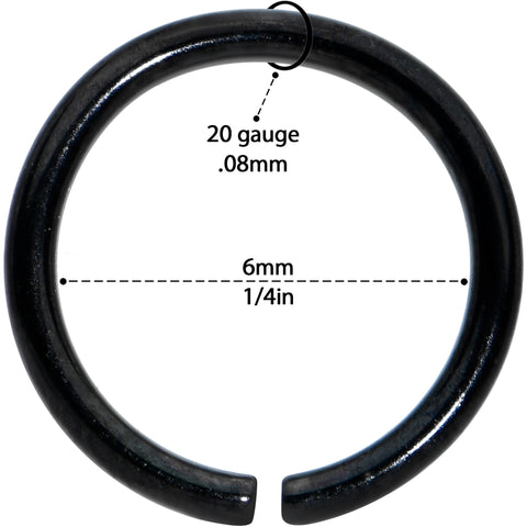 20 Gauge (.8mm) 1/4" (6mm), Black PVD over Solid Grade 23 Implant Grade Titanium Circular Ring (Ti-6AL4V-ELi ASTM F-136), Rounded Ends