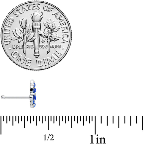 You'll be getting an endless stream of compliments with this 20 gauge nostril jewelry! It's made with a 6mm durable 316L surgical grade stainless steel straight post. It features a cluster of deepest blue cubic zirconia gems, with textured detailing. The overall look is reminiscent of a bubbling fountain. Let a geyser of gorgeousness adorn your nose piercing with this beautifully blue nostril ring!Specifications