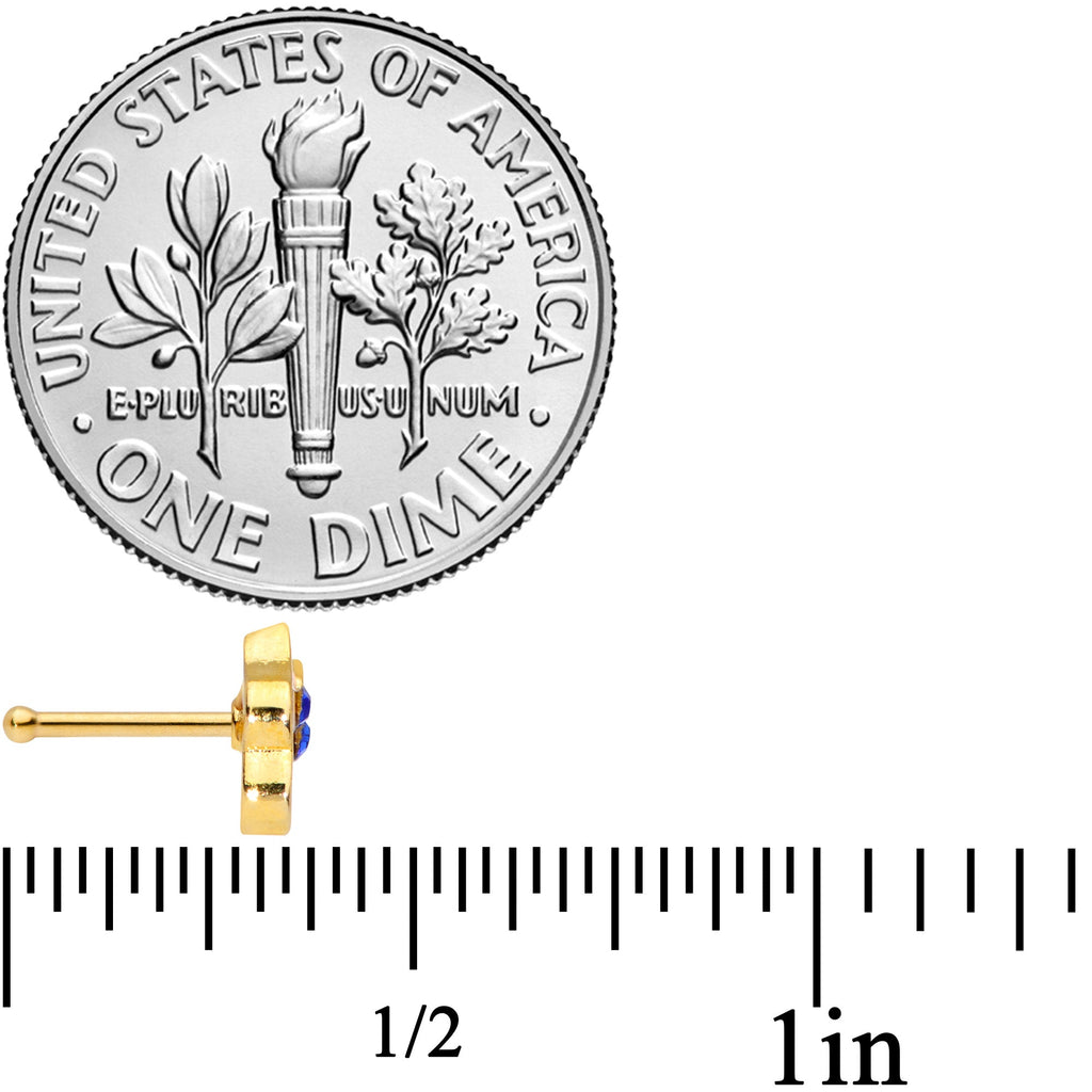 20 Gauge 1/4 Blue CZ Gem Gold Tone Sweet Kitty Cat Nose Bone