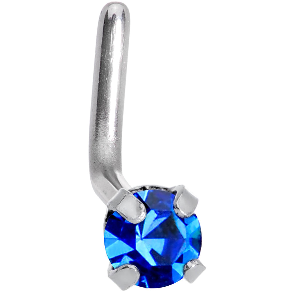 Sometimes it's the simplest things that make the look. This 20 gauge nose stud measures 1/4" length at the bend and is made of durable 316L surgical grade stainless steel. It features a 2mm blue cubic zirconia gem for just a touch of glamour.Specifications