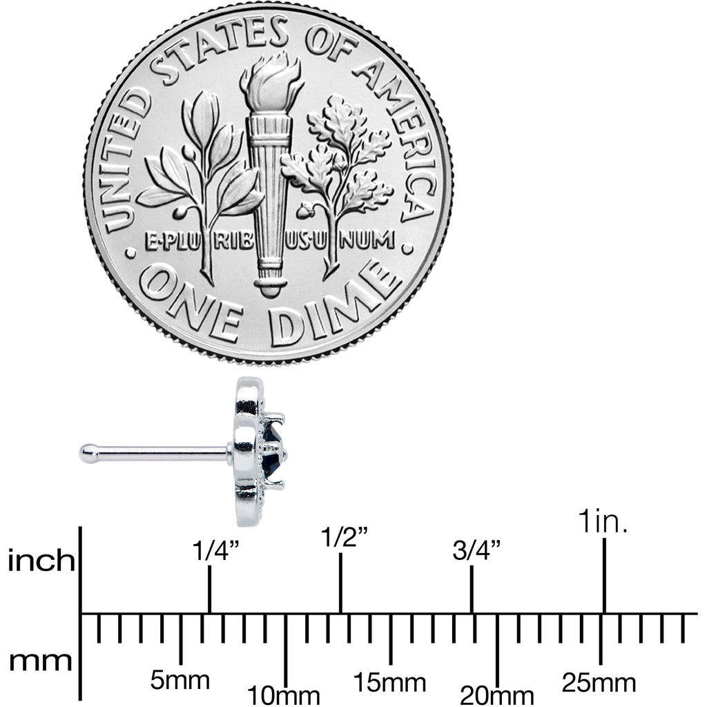 This stately, stylized 20 gauge nostril ring adds an antique feel to a modern piece! It's made with a 6mm durable 316L surgical grade stainless steel straight post. It features a stylized cross charm, with an Art Deco design that's enhanced with textured embellishment . It's further embellished at the center with a deep blue gem for a touch of color that truly gives this piece a classic feel. Once you have this in your nose piercing, taking it out will never cross your mind!Specifications