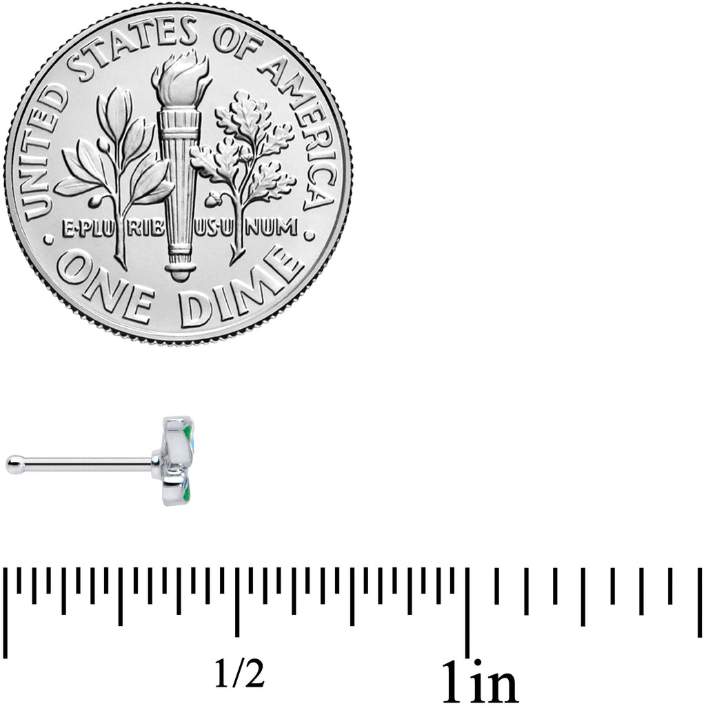 This 20 gauge nostril ring is one you can't help but notice! It's made with a 6mm durable 316L surgical grade stainless steel straight post. It features a butterfly charm, inlaid in bright shades of pink, blue, and green. The butterfly is further embellished with textured detailing for an added touch of glamour. Let your look spread its wings and soar into style with this bright and beautiful butterfly nose piercing ring!
