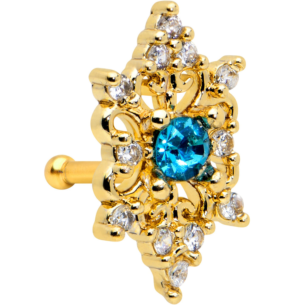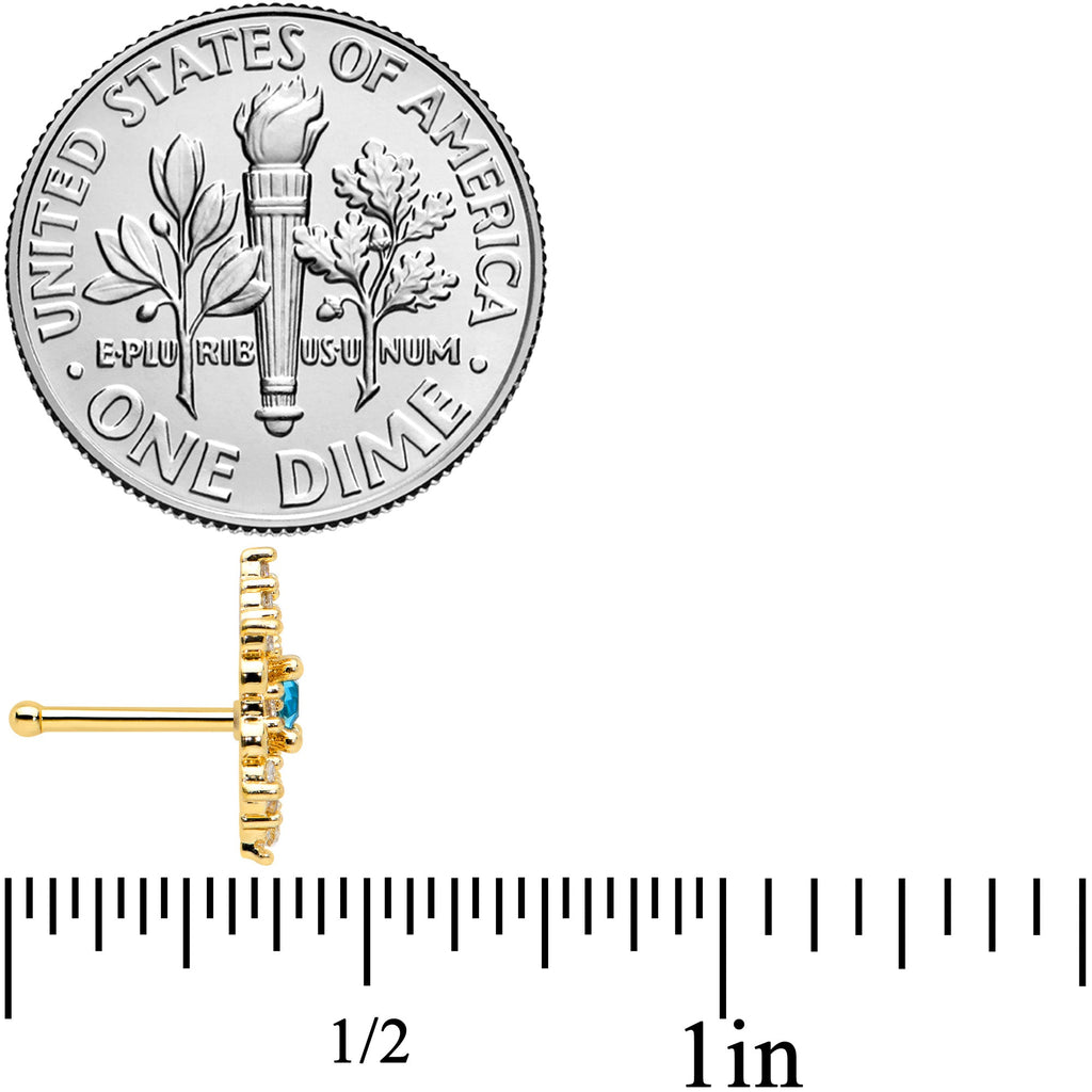 20G 1/4 Clear Blue Gem Gold Tone Royal Heart Nose Bone