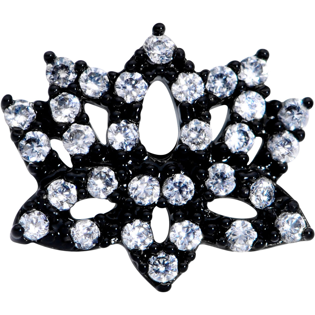 20G 1/4 Clear CZ Gem Black Lotus Flower Nose Bone