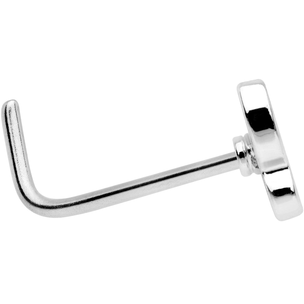 Flap and soar through life with this cute little flapping butterfly nose piercing. A clear CZ gem encrusted butterfly sits at the end of this 20 gauge L-shaped nose bone piercing. The silver tone butterfly is mounted on a 1/4" length at the bend L-shaped post made with durable 316L surgical grade stainless steel.