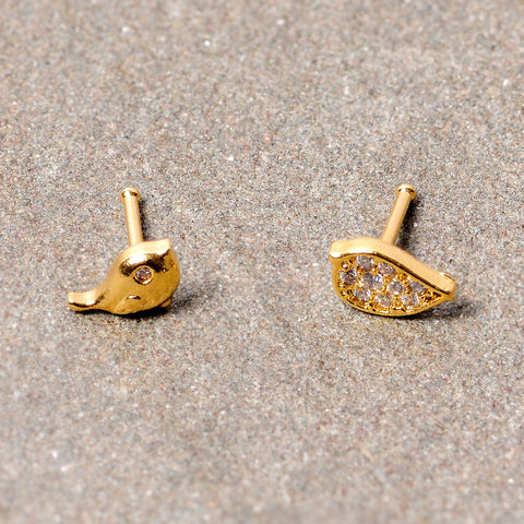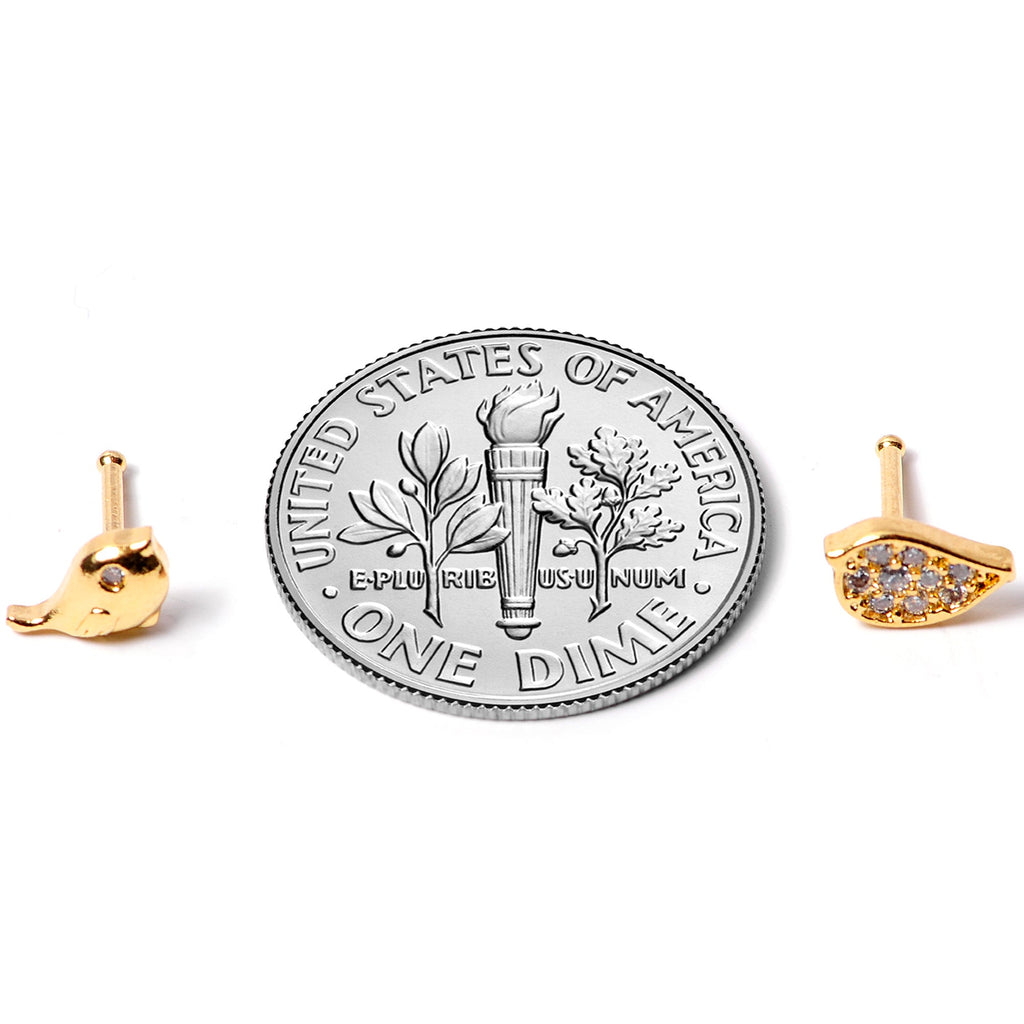 20 Gauge 1/4 Clear CZ Gem Gold Tone Little Birds Nose Bone Set of 2