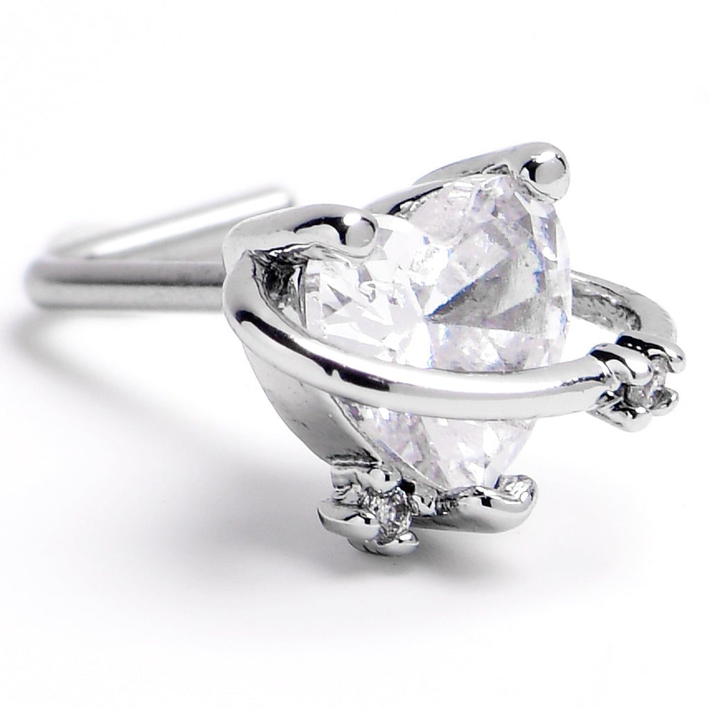 20 Gauge 1/4 Clear CZ Gem Heart Saturn L Shape Nose Ring