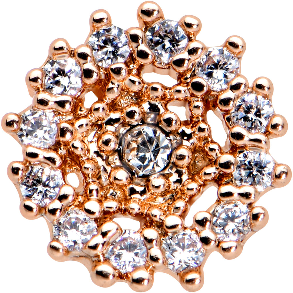 20 Gauge 1/4 Clear CZ Gem Rose Gold Tone Geometric Web Nose Bone