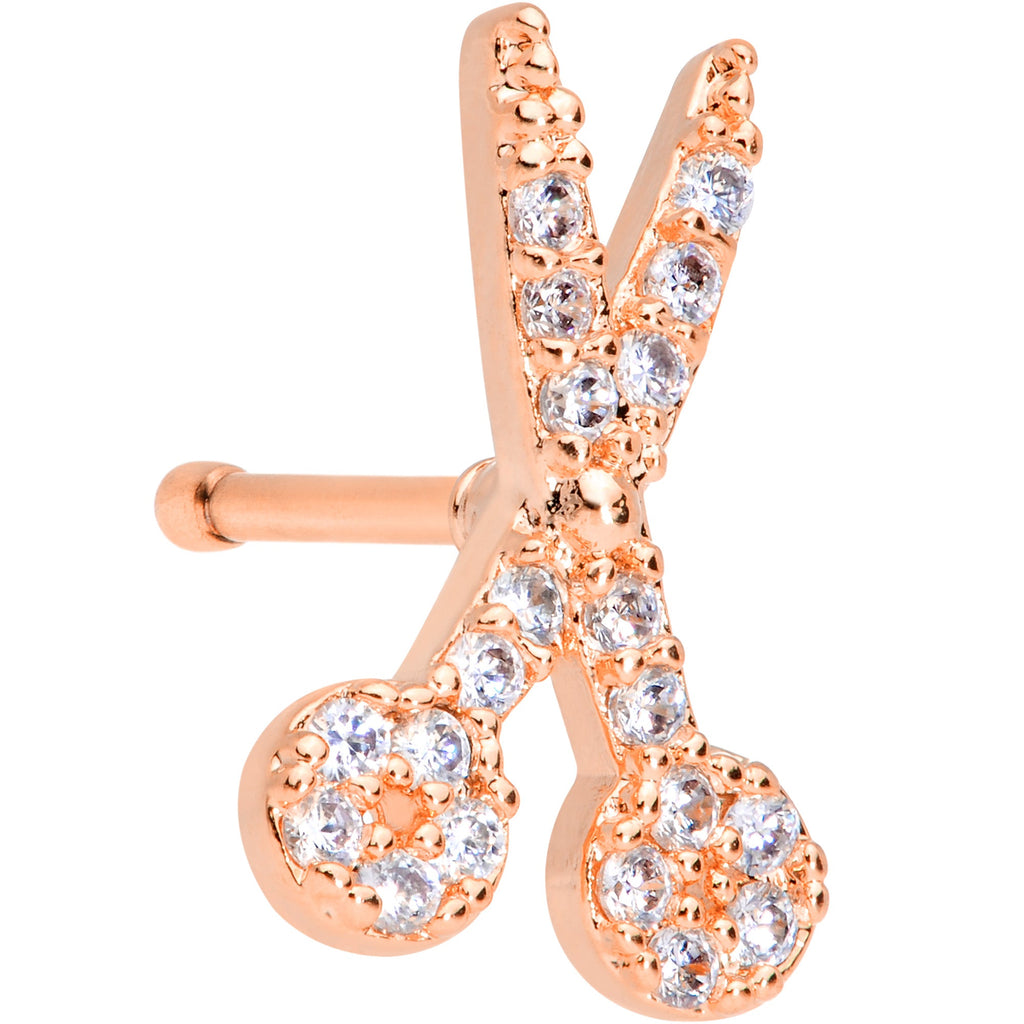 20G 1/4 Clear CZ Gem Rose Gold Tone Shear Scissors Nose Bone