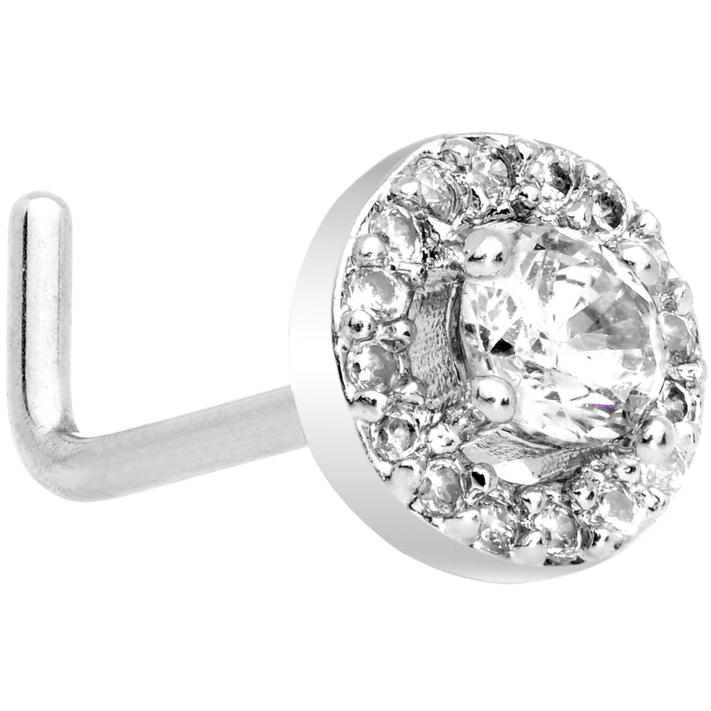 20 Gauge 1/4" Clear CZ Gem Round Double Tier L Shaped Nose Ring