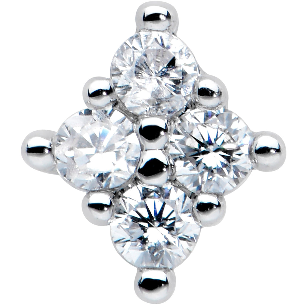 Some things are classics for a reason - like this 20 gauge nostril ring! It's made with a 6mm length at the bend 316L surgical grade stainless steel L-shaped post. It features a simple rhombus charm, set with four clear cubic zirconia gems. It also features textured embellishment at the center for a bit of contrast that really makes the whole look pop! You'll have a classic look that never goes out of style when you're rocking this timeless rhombus nose piercing jewelry!Specifications