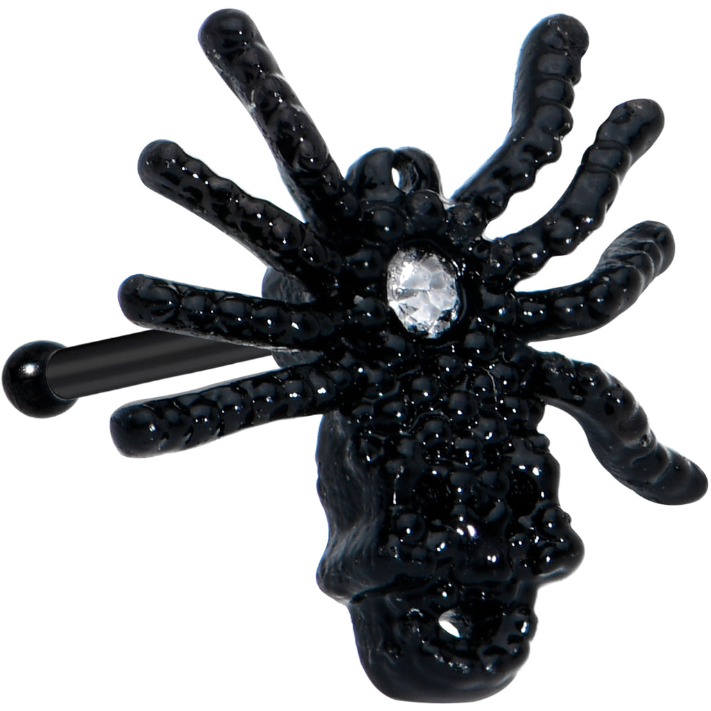 20 Gauge 1/4 Clear Gem Black Spider Halloween Nose Bone