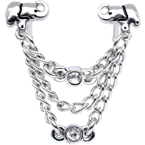 20 Gauge 1/4" Clear Gem Elephant Chain Dangle Double Nose Bone