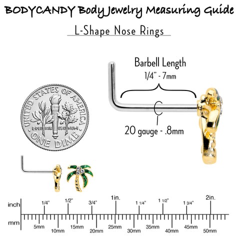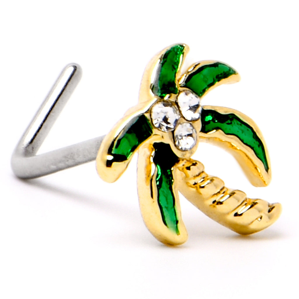 20 Gauge 1/4 Clear Gem Golden Palm Tree Style L Shape Nose Ring