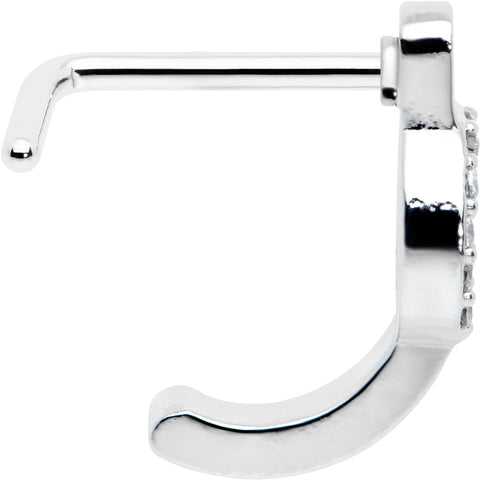 20 Gauge 1/4 Clear Gem Retro Peace Sign Faux Hoop L Shape Nose Ring