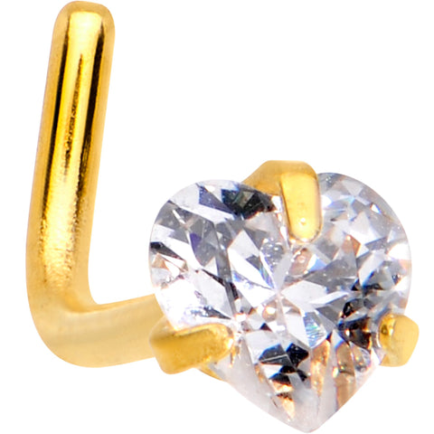 20 Gauge 1/4" Clear Heart 3mm CZ Gem Gold IP L-Shape Nose Ring