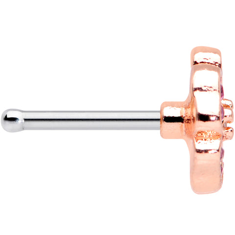 20 Gauge 1/4 Clear Pink Gem Rose Gold Tone Heart Flower Nose Bone